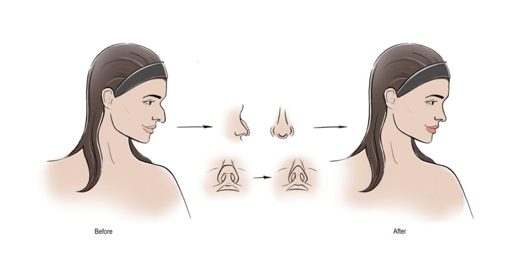 Surgery may involve reshaping bone and cartilage, refining the nasal tip, correcting septal deviation, supporting nasal valves, or placing cartilage grafts when needed for structure and airflow.
