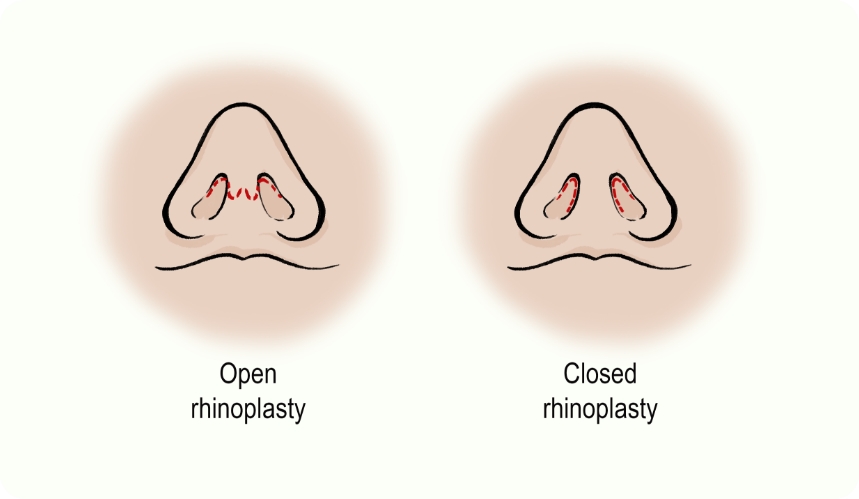 Open rhinoplasty, with a small incision across the columella